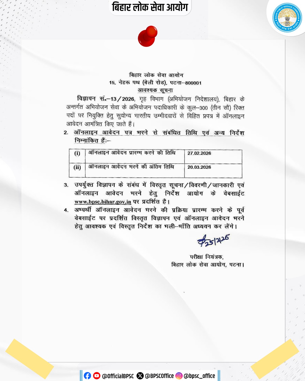 BPSC APO Recruitment 2026 – Vacancy For 300 Posts