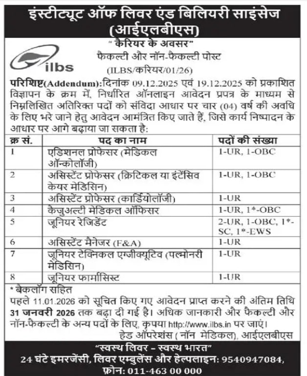 Dear friends, Institute of Liver and Biliary Sciences (ILBS) has released ILBS Recruitment 2026. All the candidates who like government job can see the PDF of ILBS Notification 2026. Eligible and interested candidates can apply for this job before the last date. Candidates read this article till the end to get the dates, qualifications, age limit, fees, application and other information of ILBS Recruitment Online Form 2026.