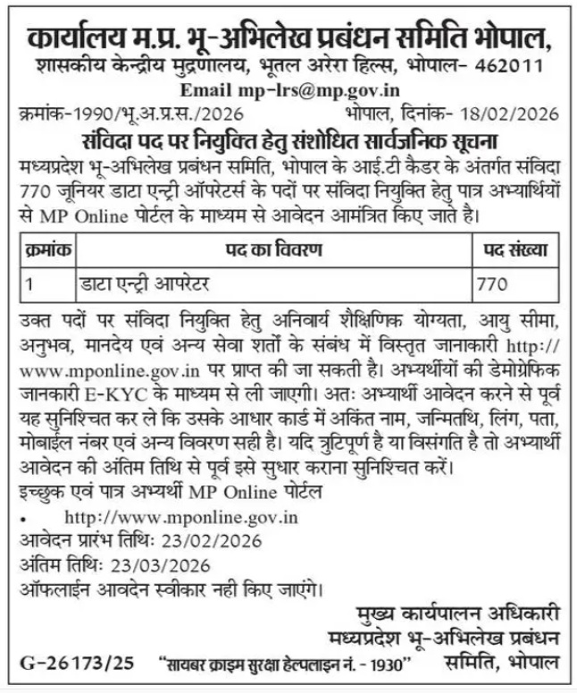 Post As Per MP Bhulekh Recruitment Notification 2026