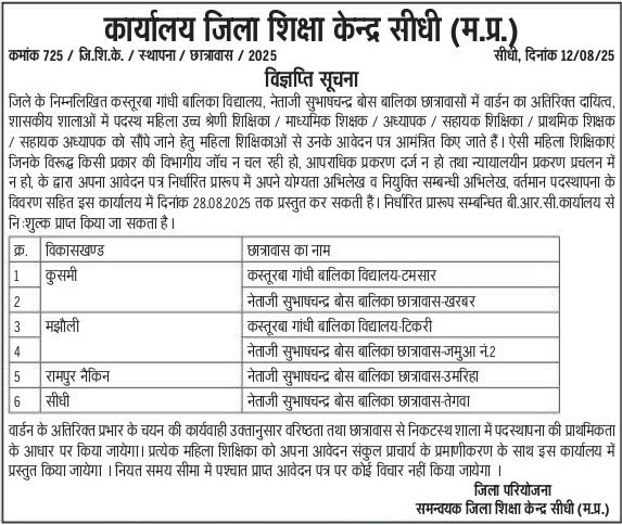 Dear friends, District Education Center Sidhi (M.P.) has released MP Jila Shiksha Kendra Recruitment 2025. All the candidates who like government job can see the PDF of MP Jila Shiksha Kendra Notification 2025. Eligible and interested candidates can apply for this job before the last date. Candidates read this article till the end to get the dates, qualifications, age limit, fees, application and other information.