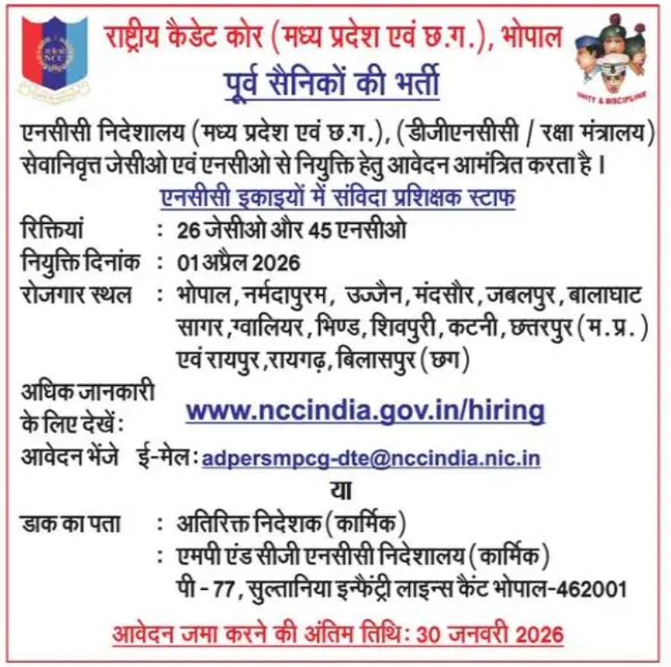MP NCC Recruitment 2026 – Vacancy For Various Posts