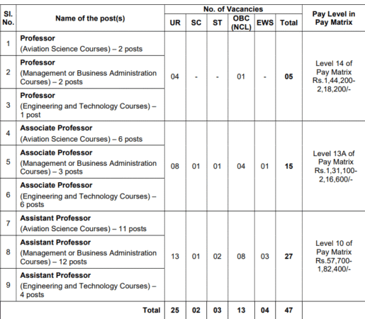 Assistant Professor (Aviation Science) – 55% marks (or an equivalent grade in a point scale wherever grading system is followed) at the